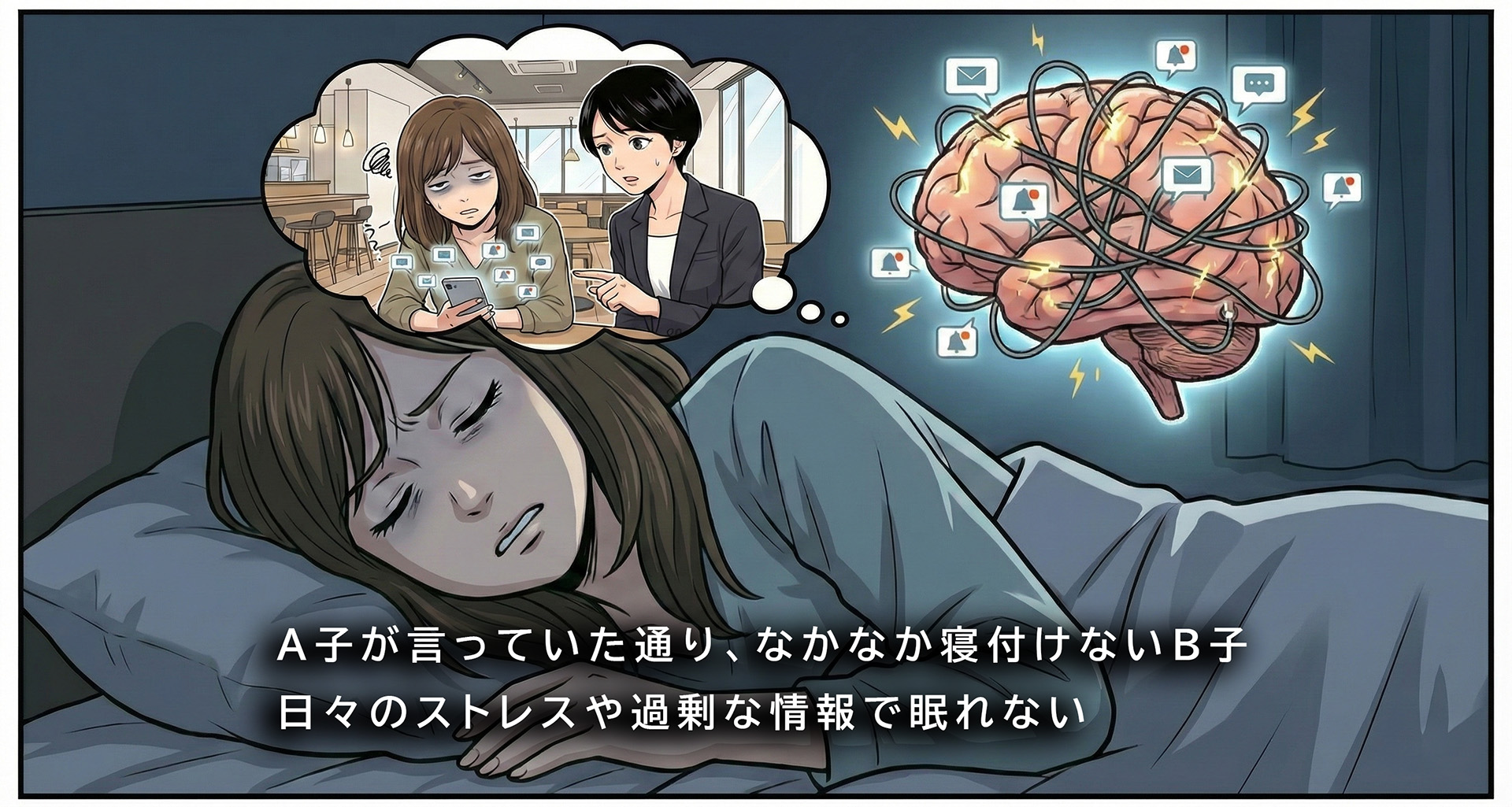 脳は、莫大な情報処理に追われ『常に緊張』しているため、睡眠中でも「脳がオフになれていない状態」になりがちです。